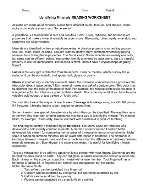 Web Results For Identifying Minerals Worksheet.