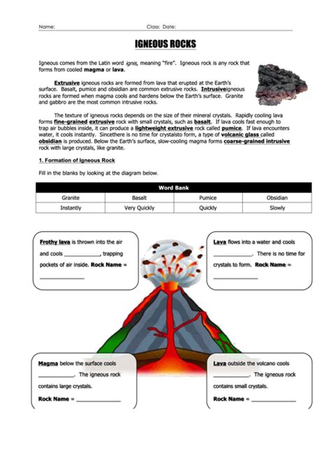 Free interactive exercises to practice online or download as pdf to print. Web this reading and worksheet provides the student with a quick reference to important information about igneous rocks.it is a good introductory assignment meant to be used. Join to access all included materials.