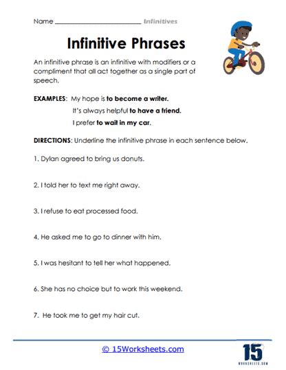 Infinitive Phrases Worksheet. (the infinitive phrase is the object of wants.) to win at. Web infinitives worksheets and online exercises.