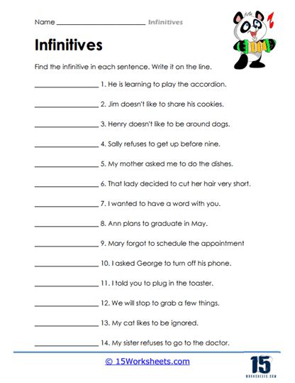 Web This Printable Worksheet Asks Students To Read Through The Given Sentences And Circle The Number Of Each Sentence That Contains An Infinitive Phrase.