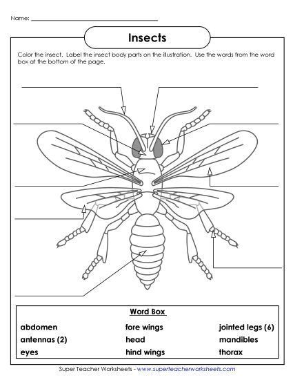 Insect Worksheet For 2Nd Grade. Learning about insect body parts free printable. 2nd grade, 3rd grade, 4th grade, 5th grade.