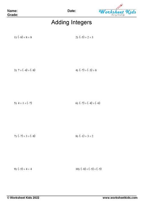 Integer Addition Worksheet 8Th Grade. Most popular first newest first. Choose your grade / topic: