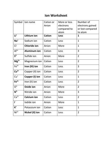 Web quiz & worksheet goals. What does the number next to the ions signify? Complete the following table, using the periodic table in the back of your book.