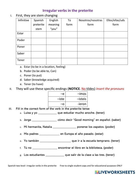 Web spanish preterite irregulars worksheet 4 1. Web results for irregular preterite worksheet irregular preterite verbs worksheets | spanish verb coloring activity | colorea. Web docx, 21.44 kb.