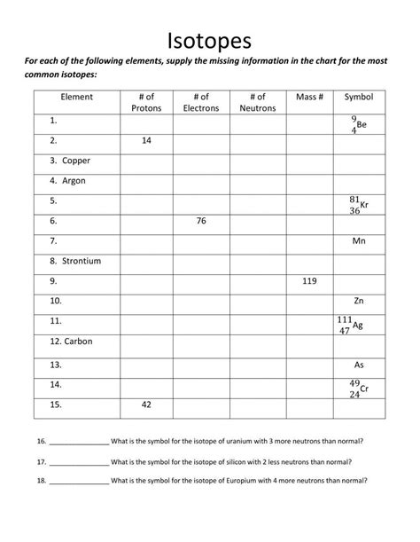 I1,t chemistry worksheet isotope notation. Web isotope practice worksheet standard: The most common isotope can be found by rounding the atomic mass found on the periodic table.