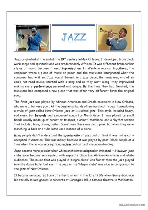 This worksheet on etta james celebrates the legacy of this african american singer of soul and jazz. Web jazz reading comprehension activity. Bulletin board pages are also included.