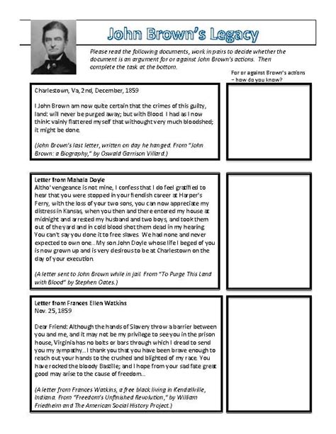 Worksheets Are John Brown Document Work, John Browns Raid Lesson Plan, John Browns 1859 Harpers Ferry Raid,.