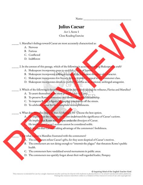 Support The Development Of High School Close Reading Skills With This Set Of Analysis Questions On Act 1, Scene 2, Of Shakespeare’s Julius.