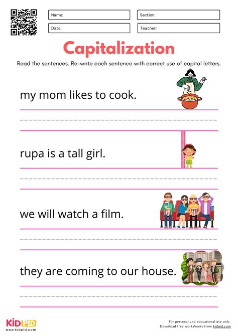 Web capitalizing specific worksheets to print: In particular, starting sentences with capital letters and capitalizing proper. These capitalization worksheets pdfs are best suited for kids.