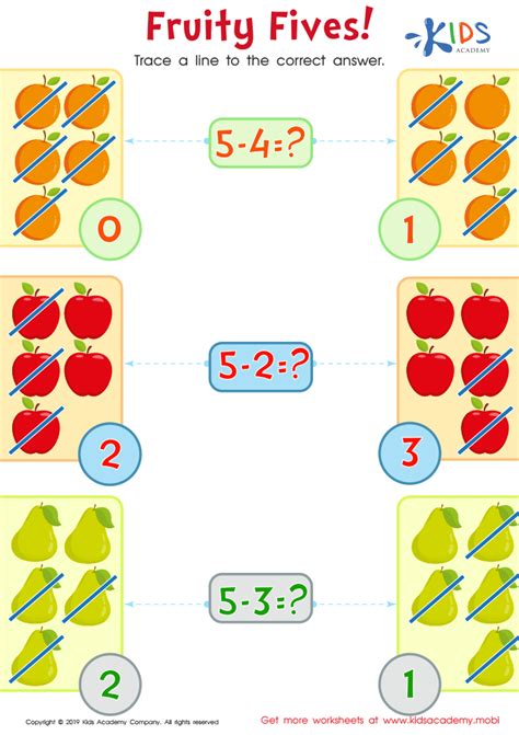 Kindergarten Fruity Fives Worksheet. There are less hints in the. In this colorful worksheet, there are three simple equations which your kids must solve.