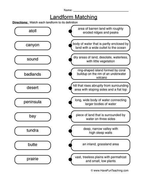 Web matching activity with words and pictures about landforms. Web they will try to match the landform name to the matching landform definition. Web landforms matching activity id: