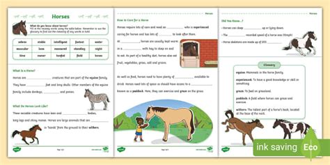 Learning About Horses Worksheet. Learn facts about draft horses in this horse fun. Award winning educational materials designed to help kids succeed.