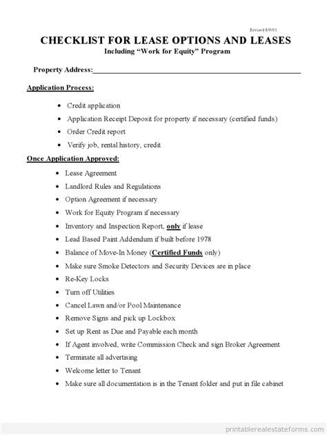 2 copy of lease checklist Web lease checklist worksheet name_____ date_____ directions: Each item will require discussion.
