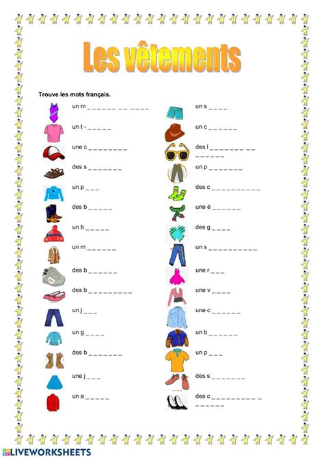 Web live worksheets > french > français langue étrangère (fle) > les vêtements > les vêtement. Les vêtements, french other contents: These printable writing activities for reviewing french clothes vocabulary and phrases will be.